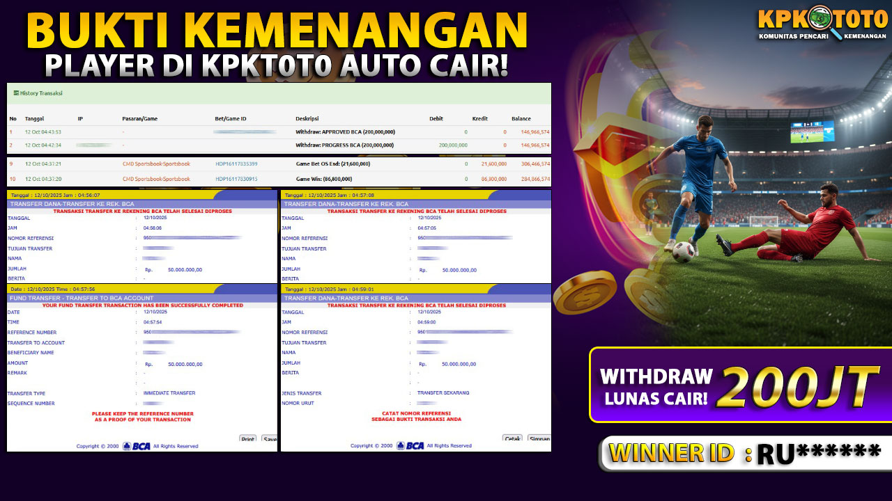 Bandar togel KPKTOTO merupakan bandar togel dan slot online yang membayar semua kemenangan member hingga lunas. Setiap pembayaran pada situs kami dilakukan dengan cara transfer ke rekening tujuan yang sudah di daftarkan pada situs togel online kami, Pembayaran hanya dapat di proses jika rekening yang di daftarkan telah valid dan dapat di transfer. Semua kemenangan member yang mendapatkan hadiah jackpot terbesar akan kami posting agar semua pemain dapat melihat bandar situs terpercaya KPKTOTO ini membayar semua kemenangan member hingga lunas. Setiap postingan yang kami posting akan kami lakukan sensor pada nomor rekening 4 digit dan nama rekening untuk menjaga privasi dan kerahasiaan member. Postingan Jackpot yang kami posting agar member atau pemain yang belum pernah bermain bisa melihat bandar togel Bukan Kaleng Kaleng Seperti KPKTOTO ini, Semua postingan jackpot yang kami posting dapat di lihat data keasliannya melalui nomor reff yang di tunjukan pada bank atau mbanking saat kita melakukan transfer.